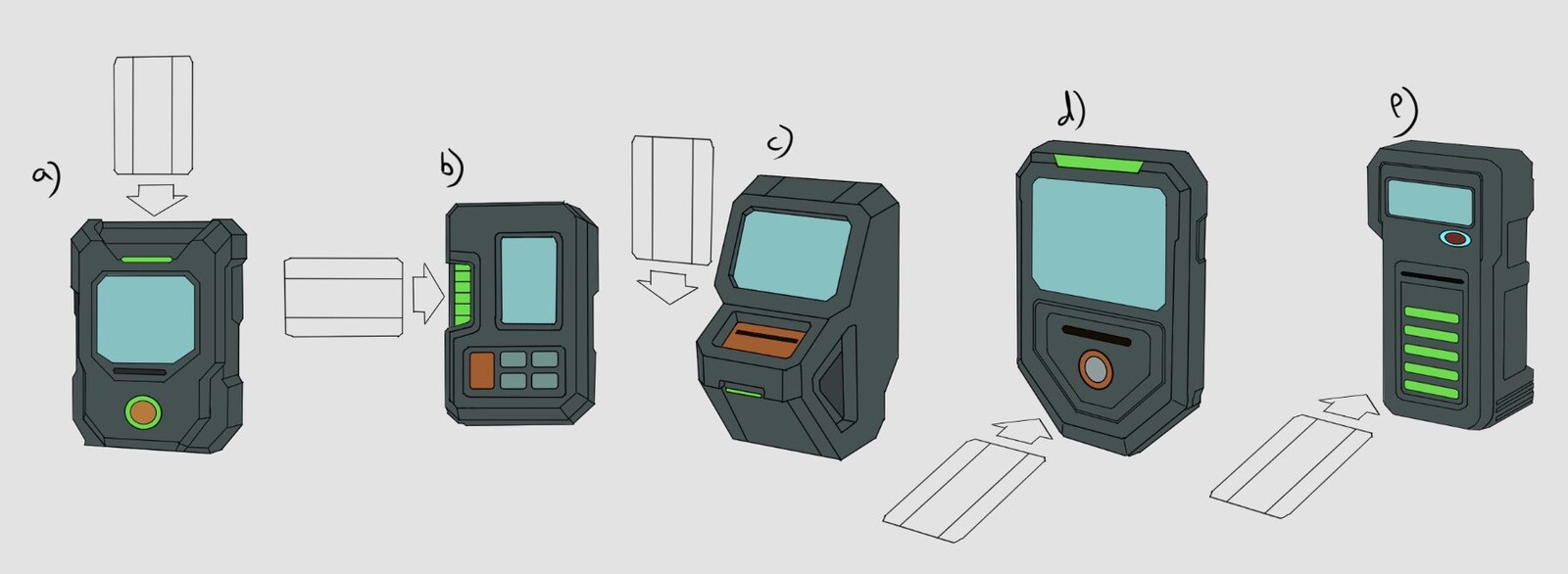 Clear interaction points (card insertion, scanner placement, door feedback)