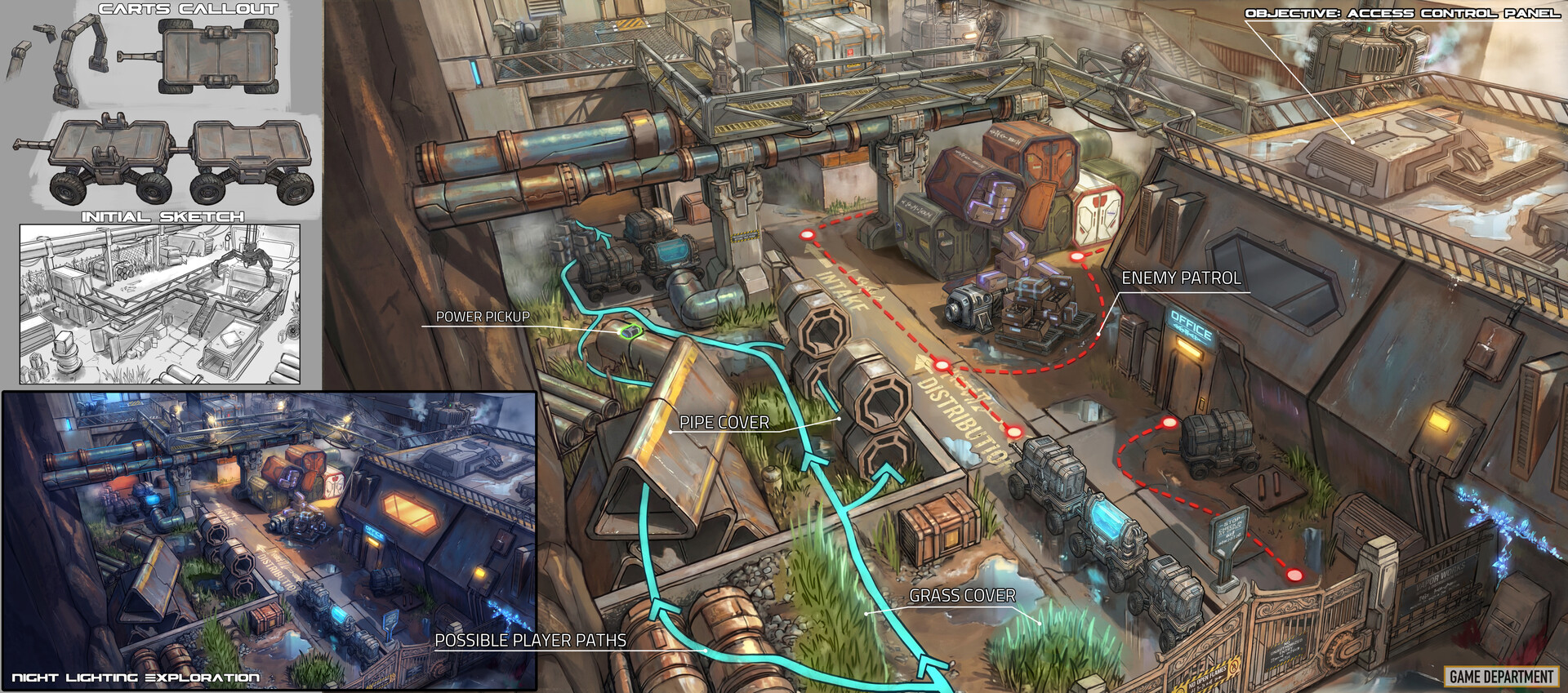 Environment concept designed with a strong focus on gameplay readability and player navigation, done for an unannounced project @ gamedepartment.com